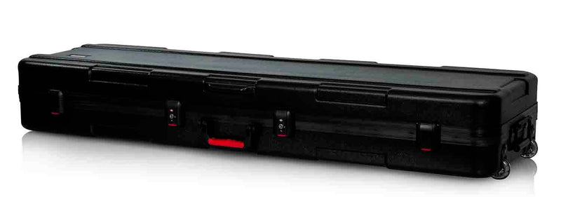 The Gator Case GTSA-KEY88SL is polyethylene Keyboard Case with Wheels for Slim 88-note Keyboards in black. Fits Slim 88-note Keyboards. Nearly Indestructible Polyethylene Construction. Two TSA Accepted Locking Latches Ideal for Air Travel. Unique Wedge and Block Design for Interior Customization. 200lb Recessed In-Line Wheel Weight Capacity Ergo-Grip Comfort Top Handle. (2) Spring Loaded Rubber Grip Tow Handles with 130lb Weight Capacity. Surface Mounted Impact Diversion Latch Housing and Red Release Trigger. Black Powder Coated Hardware and Continuous Valance.