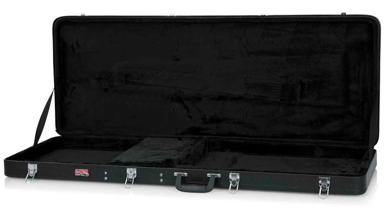 The large interior storage compartment fits everything from straps and tuners to picks and capos. Chrome plated lockable latches form a secure enclosure and the ergonomic carrying handle perfectly balances the case’s weight and gives you a comfy grip on your gear. Keep your Radical Shaped Guitars such as Gibson Flying V, Explorer, or Dean ML safe and sound with the Gator GWE-EXTREME hard-shell wood case.