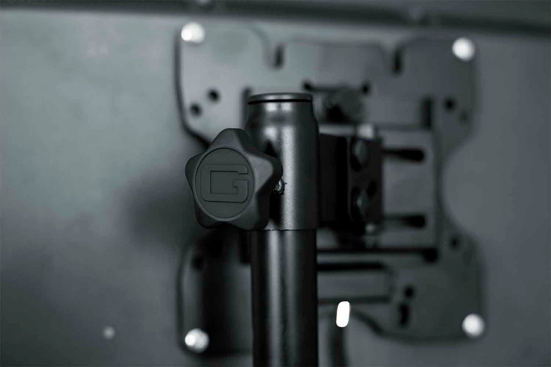 The Gator Frameworks GFW-AV-LCD-2 is designed to stay mounted to the screen at all times for easy removal and replace on the fly. The mounting plate is pre-drilled to be compatible with both 100 x 100 and 200 x 200 VESA hole patterns.