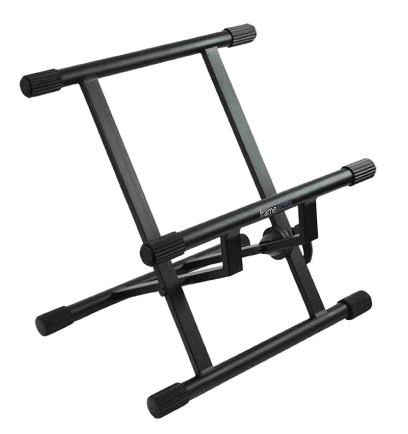 The Gator Frameworks GFW-GTR-AMP is a Combo Amp Stand with rubberized leveling feet.