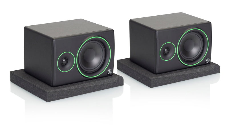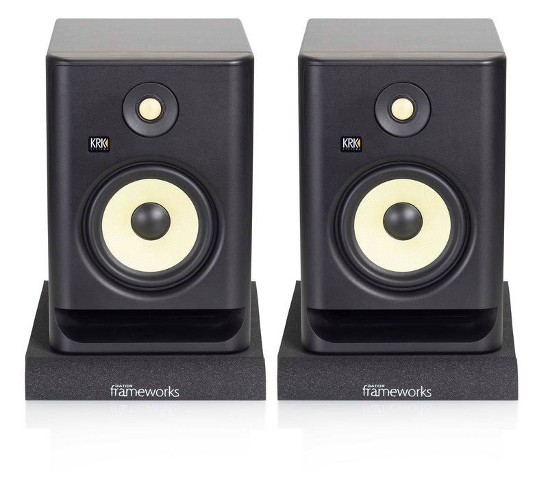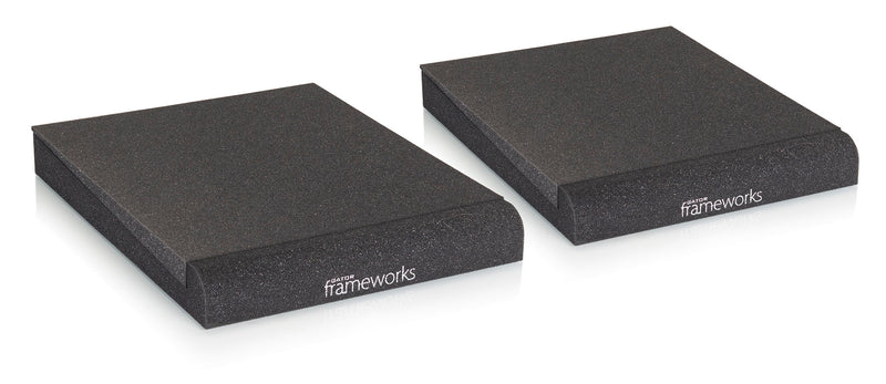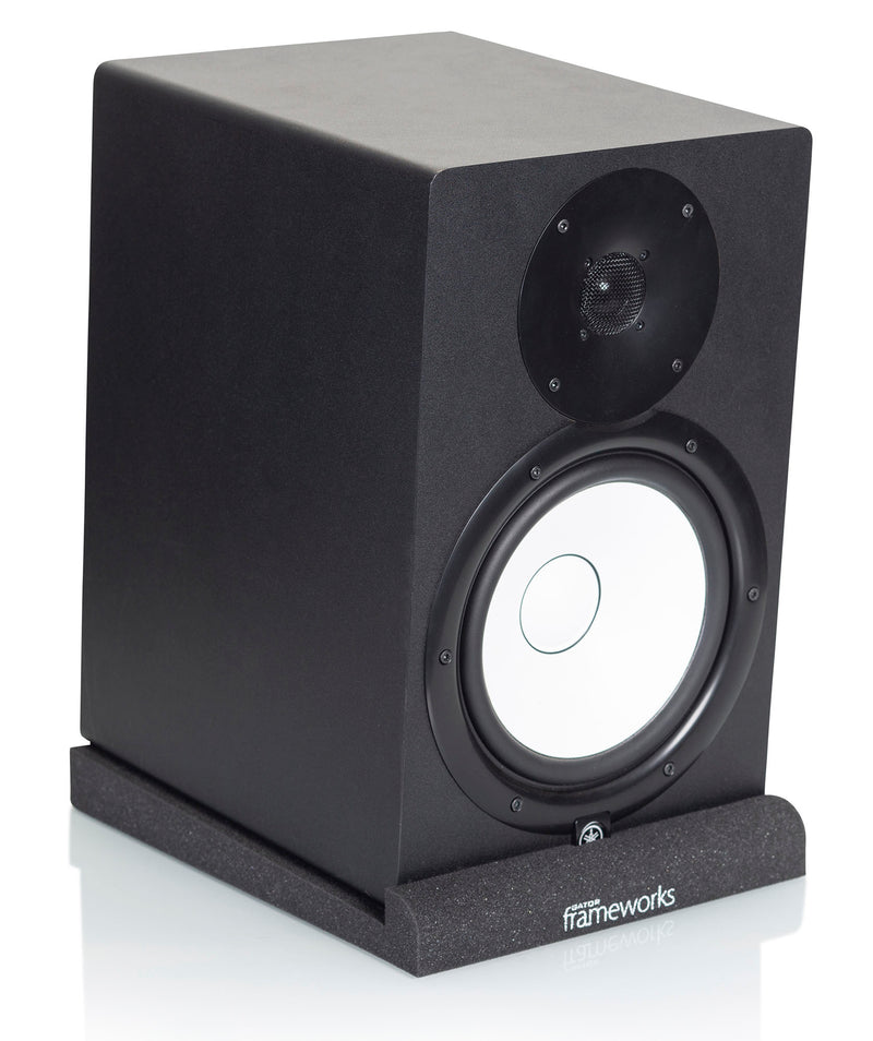 The Gator GFW-ISOPAD-MD Studio Monitor Isolation Pads for Studio Monitors. Enhances Audio by Isolating Speaker from Desktop Surface. Designed to Fit 6.5-inch Studio Monitor Vertically or Smaller Speaker Horizontally. Includes (2) Base Platforms & (2) Reversible, Removable Angling Pieces for Tilting Monitors.