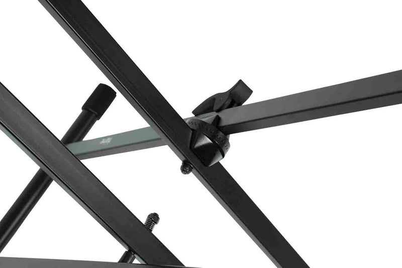 The Gator Frameworks GFW-KEY-2000X is a Deluxe "X" Style Keyboard Stand with rubberized leveling foot.
