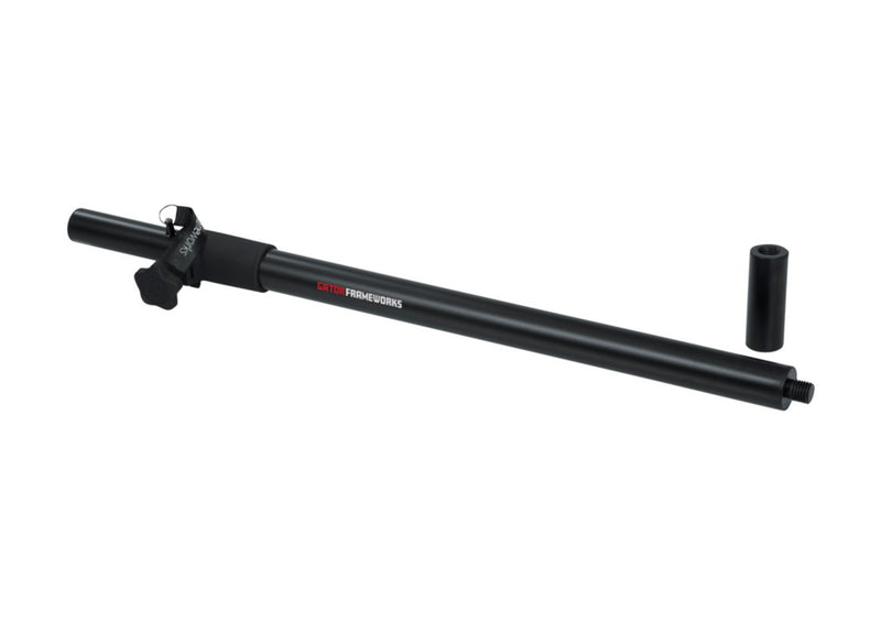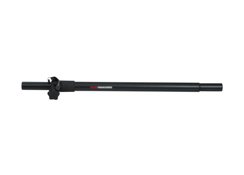 The Gator GFW-SPK-SP Adjustable Subwoofer Speaker Pole with M20 Adapter offers reliable support for full-range speakers up to 60 lbs. Built from durable steel, it ensures long-lasting performance and stability with its safety pin lock. The dual-diameter design fits both 1-3/8" and 1.5" speaker mounts, while the removable M20 threaded adapter adds extra versatility. Easily adjustable from 35" to 60", this sub pole provides secure, customizable height for any setup.