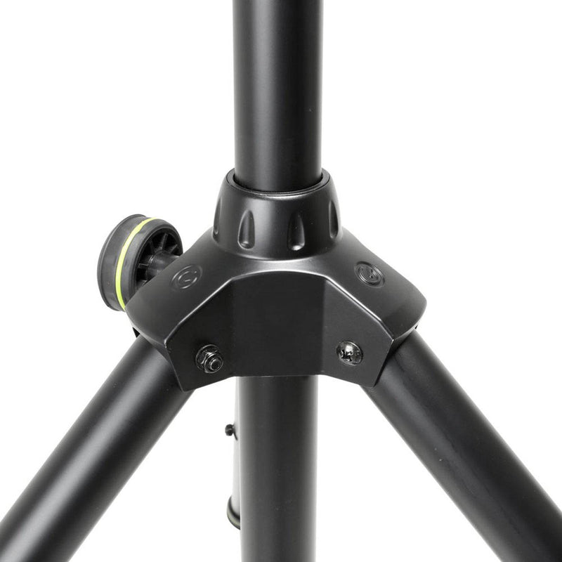 The GSP 5211 ACB is a classic tripod speaker stand made of sturdy but light aluminum tube with black powder coating and a maximum height of 195 cm. The integrated air suspension enables boxes of up to 50 kg to be lowered effortlessly.