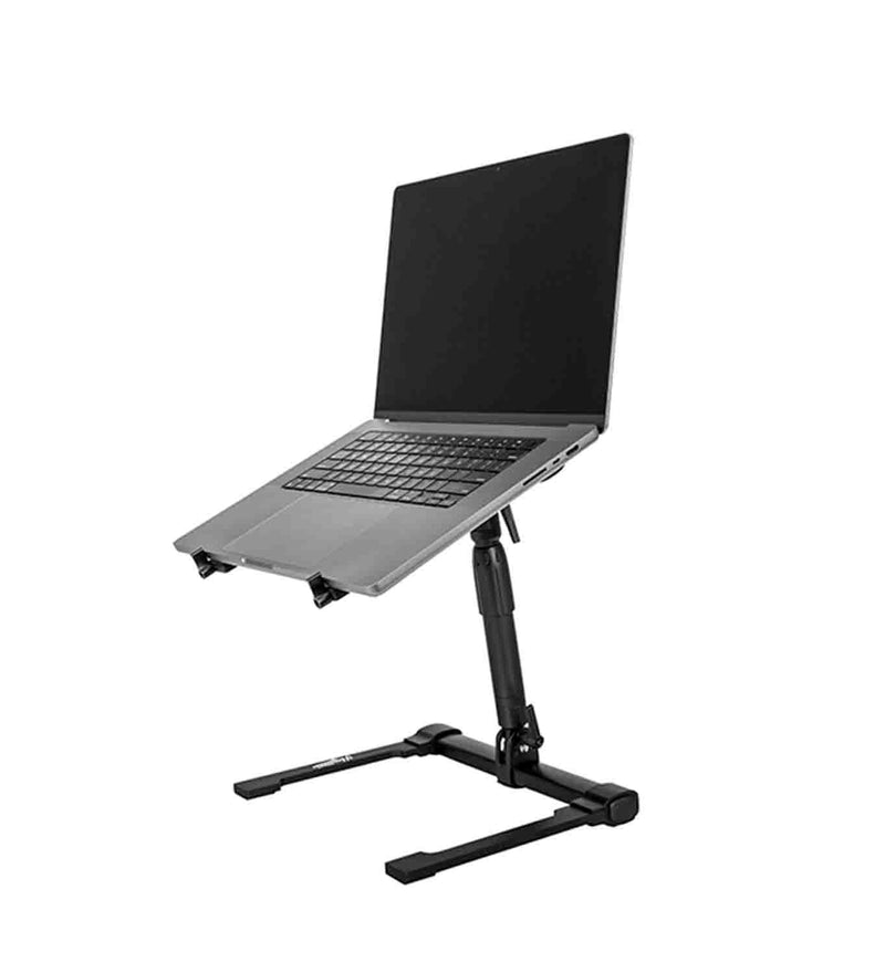 The Headliner HL20013 Gigastand is a fully-adjustable laptop stand designed for DJ’s, Musicians, Performers, and Creators. Constructed of steel and aluminum, it provides the ultimate combination of portability and durability. It is configurable in C or Z positions, and folds flat thanks to the intuitive ratchet lever system. Easily loosen and tighten each joint to find the right angle for your setup. The telescoping neck rotates 360˚ and has a max height of 16”.