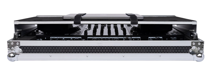 The Headliner Flight Case for the DDJ-FLX10 with Laptop Platform is a rugged yet stylish road case designed specifically for Pioneer DJ DDJ-FLX10 and DDJ-1000SRT controllers. Headliner flight cases are built to withstand the rigors of life on the road. Whether traveling by land or air, this heavy-duty flight case is guaranteed to offer maximum protection for your gear. Built from 3/8” (9mm) plywood with rugged hexagon laminate exterior and high-density foam lined interior, it also features stackable steel ball corners, aluminium profiles, recessed spring-loaded padded handles, and butterfly latches with padlock staples. In addition to protecting your gear, Headliner cases are designed for ease of use. The DDJ-FLX10 flight case features an easy locking tongue and groove lid and has ample interior space for cable management. The locking glide-top laptop platform features a convenient cable access port and locks to keep your gear looking good and in place. The stackable ball corners also come into good use while performing on stage or in storage.