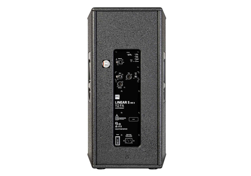 The HK Audio LINEAR 5 MK II 112 FA is a full-range mid/high unit with 12" woofer and a tweeter with 1.7" voice coil in a rotatable horn. The 60° x 40° dispersion pattern makes it easier to form speaker clusters. In addition to crystal-clear, assertive sound with an energetic bass, the LINEAR 5 MK II 112 FA achieves even greater throw distances thanks to its longer horn. The remote-controllable high-performance DSP with integrated, directly selectable presets offers a DSP Out that can route the processed signal from the mid/high unit to a non-networked speaker. The sturdy birch multiplex hybrid enclosure makes the LINEAR 5 MK II 112 FA a reliable partner for bands, DJs and sound technicians. Together with the LINEAR 5 MK II subwoofers, it provides a powerful system mid/ high unit. The increased power in the bass range ensures a powerful sound in system and full-range applications.