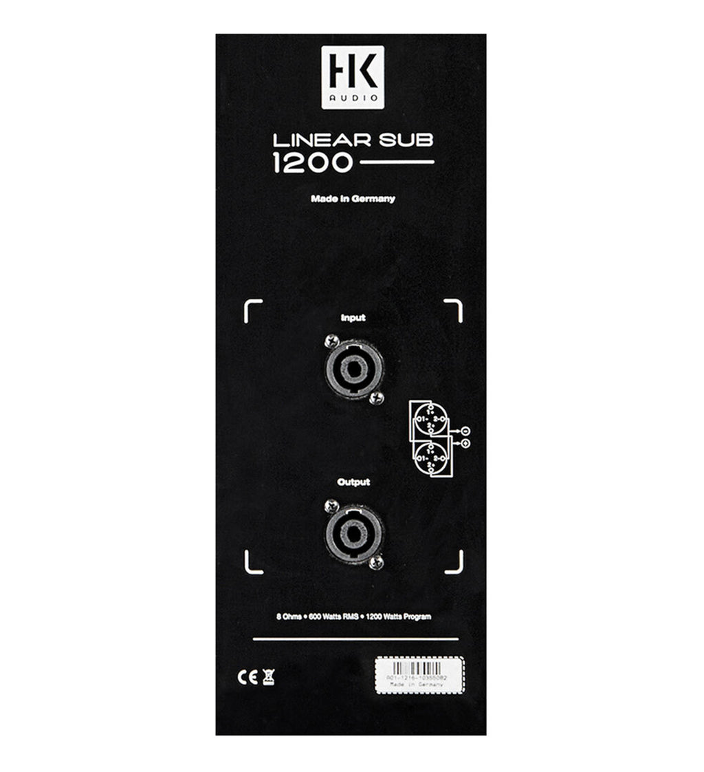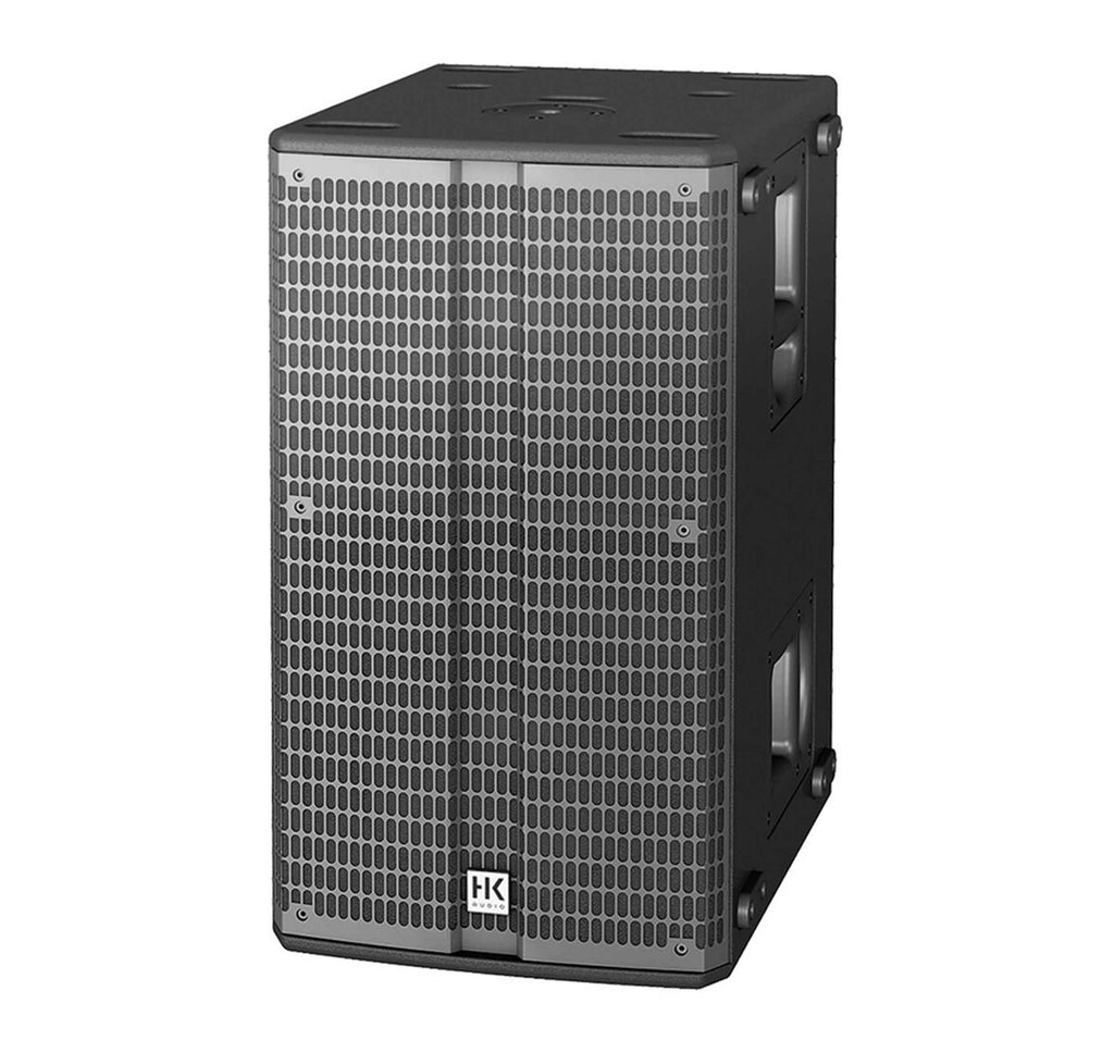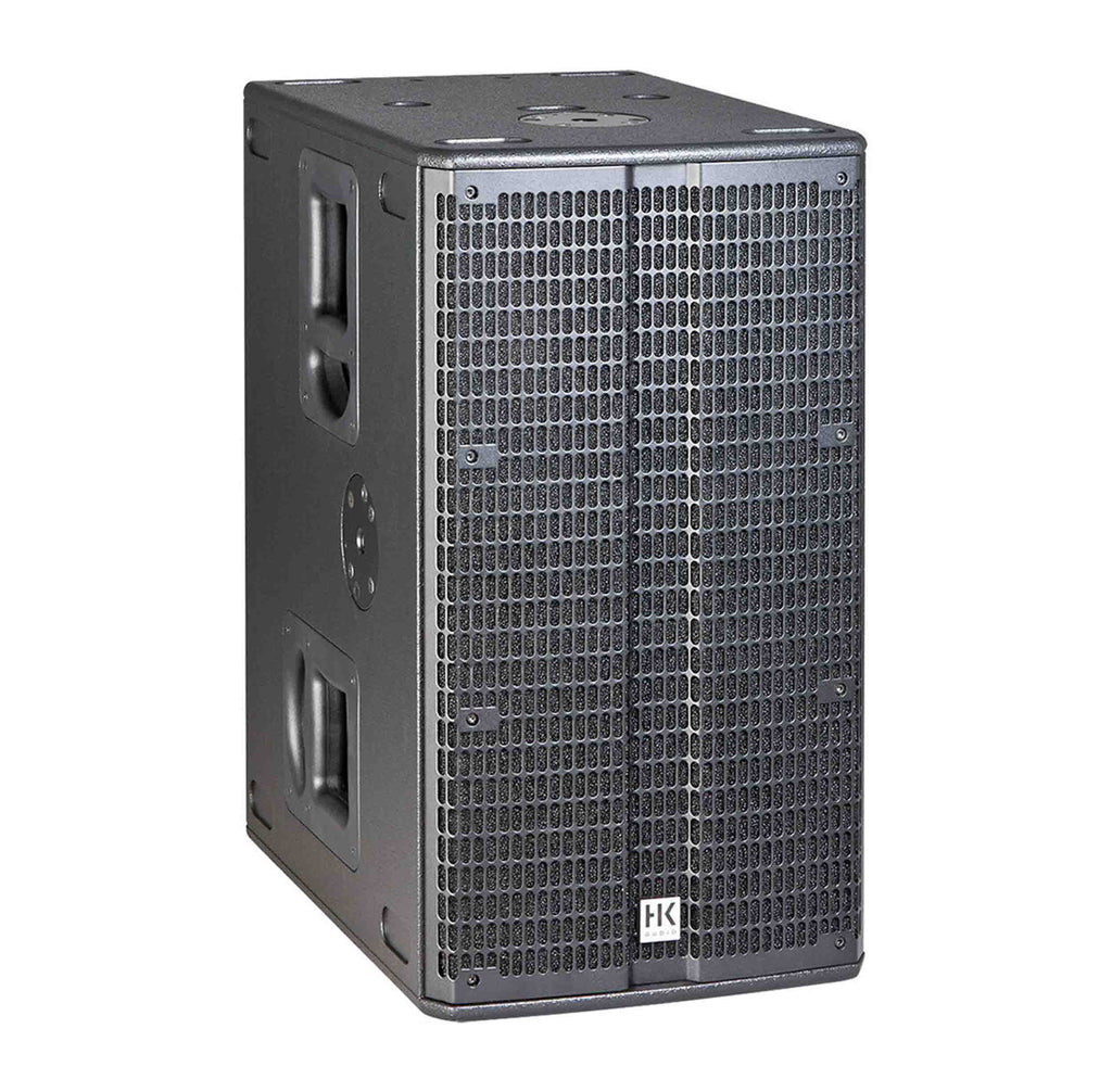 The HK Audio LINEAR-SUB-2000, 1400W Dual 12-Inch Passive Subwoofer - Black is designed to complement the LINEAR 5 mid/high units. It features two 12" woofers that are driven by a 1400W amplifier, and it can produce frequencies from 49 to 125 Hz with a maximum SPL of 135 dB. The SUB 2000 also features a double damper for precise control.