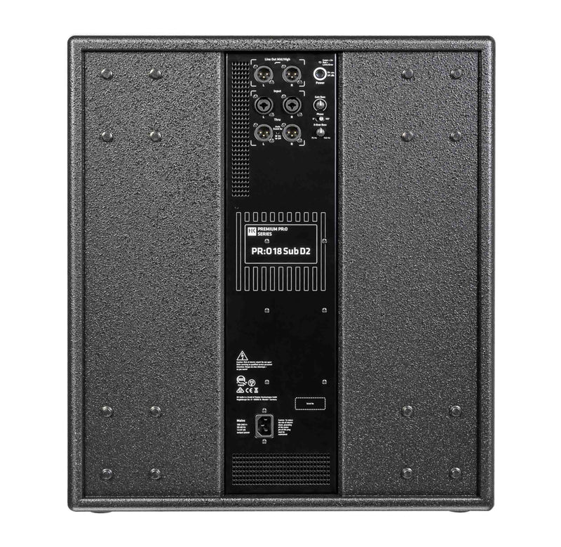 The HK Audio PR:O 118 SUB D2, 18’’ Bass Reflex Subwoofer produces a deep and powerful bass foundation with its 1,200 watts. This all-round subwoofer can be used for a wide variety of applications thanks to its stereo preamp and corresponding outputs. The classic setup can be implemented either as a half or full stack, and a 2.1 system can be created with ease thanks to the two mid/high outputs. The subwoofer takes care of the filtering required for this. This means that mid/high units that do not have their own filtering can even be connected. The required system crossover is already completely integrated in the PR:O 118 Sub D2.