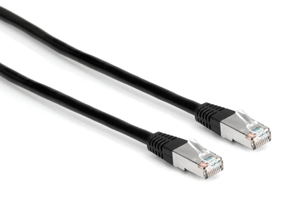 The Hosa CAT-605BK, 5-Inch Cat6 Patch Cable with 8P8C Connector - Black connects all the hardware destinations on a Local Area Network (LAN). The cable comes complete with RJ-45 male to male connectors.