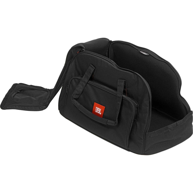 The JBL EON15-BAG-DLX is a form-fitted 600 denier nylon bag with a 10mm soft padded interior and a water-resistant backing. Designed to carry a JBL EON15 3rd generation speaker, the carry bag is also compatible with a variety of speakers from other manufacturers including American Audio, QSC, RCF, Mackie, EV, Yamaha, and more. The bag can be carried by the reinforced polyethylene-core carry handles or via the handle cut-outs that provide access to the built-in speaker handles. The external pocket provides ample storage for cables and accessories.