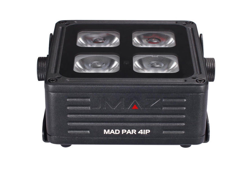 The JMAZ MAD PAR 4IP, 60-Watt RGBWA+UV Battery Powered Outdoor UpLight equipped with four 15W RGBWA+UV LEDs, delivering an impressive 60W of dynamic lighting. Designed for durability, the IP65-rated die-cast aluminum and steel structure ensures reliable performance in any weather.