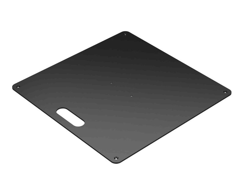 The L-Acoustics Syva Bass Baseplate for Syva System. Syva Base is a base plate for Syva, Syva Low and Syva Sub. It must be secured to the bottom of the enclosure and features four runners for stability. These can be removed to secure the base plate to the floor.