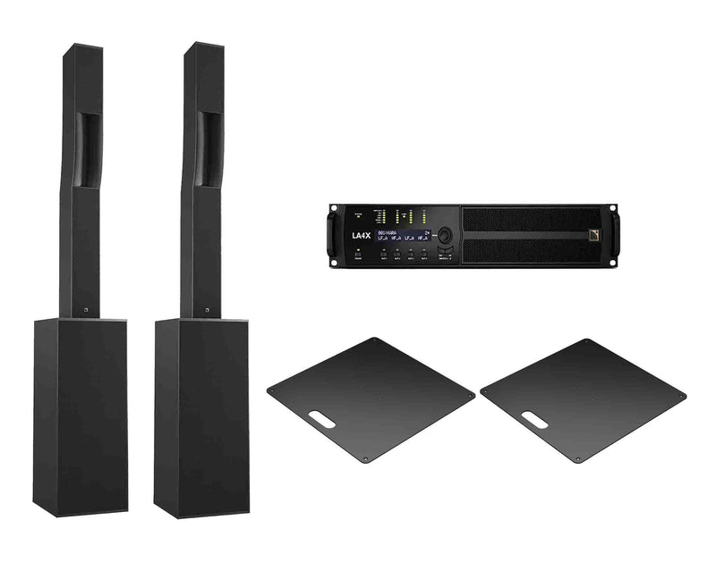 The L-Acoustics Syva System DJ Package comes with 2 L-Acoustics Syva 2-way 5" Passive Column Speaker, 2 L-Acoustics Syva Low 2 x 12'' High Power Low-Frequency Subwoofer, 2 L-Acoustics Syva Bass Baseplate for Syva System and 1 L-Acoustics LA4X US Amplified Controller with PFC 4 x 1000 W /8 Ohms.