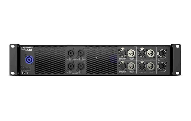 The L-Acoustics LA4X US Amplified Controller with PFC 4 x 1000 W /8 Ohms. The LA4X is an amplified controller based on a 4-input by 4-output architecture and an exclusive green power module providing maximized efficiency. With LA4X, L-ACOUSTICS® speakers can get all the benefits of the self-powered speaker, while keeping the versatility of the separated amplification approach. The L-ACCOUSTICS systems can be operated in thee connectivity modes as described below,