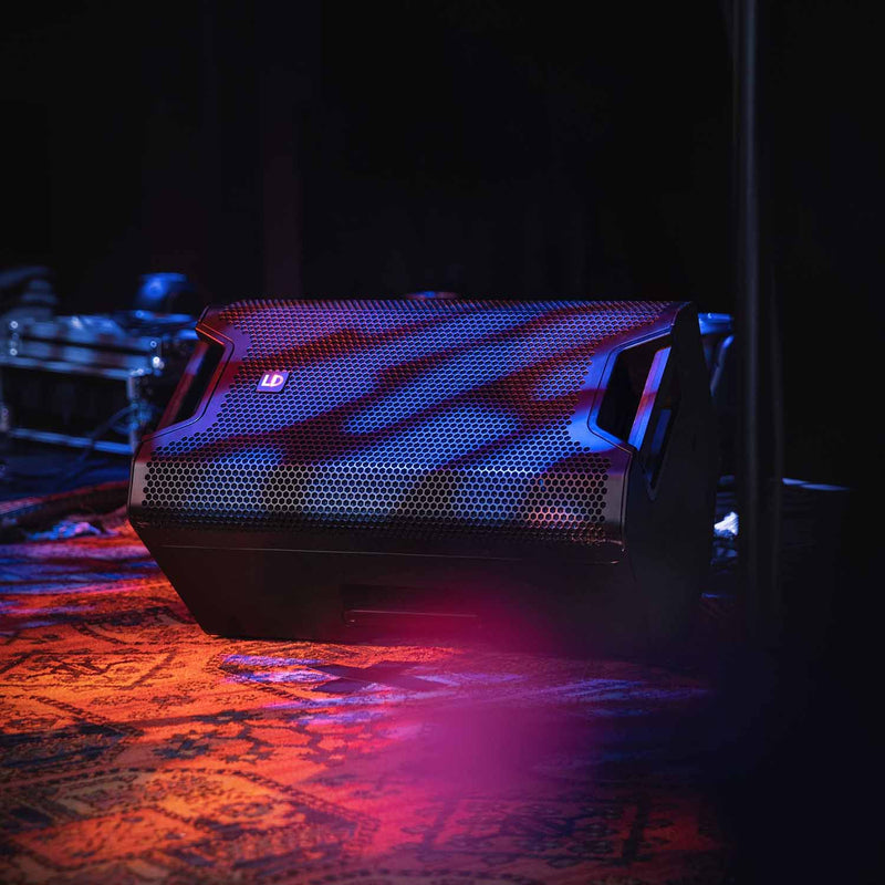 The excellent bass reproduction of the horn-loaded woofer makes the LD ICOA 12 A BT the ideal choice for musicians, bands, entertainers and dance schools. DJs can also use it without a subwoofer. The speaker convinces vertically as a satellite, horizontally in flown systems or as a floor monitor. The efficient Class D power amplifier delivers 126 dB max. and 1200 W peak power.