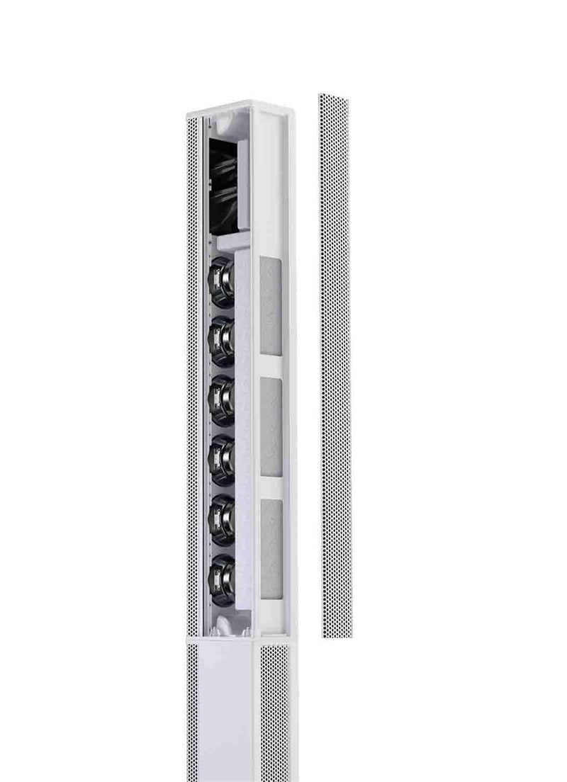 With its sleek and elegant design, the MAUI 11 G3 W looks very appealing. The two aluminum column elements sit at the front edge of the subwoofer, further enhancing the seamless visual impression. The columns are equipped with 6 x 3.5'' midrange drivers and 2 x 1'' tweeters, providing an even sound distribution with constant horizontal dispersion in combination with the innovative phase plug design. In addition, the BEM-optimized waveguide ahead of the tweeters carries the high frequencies even to the very rear audience areas.