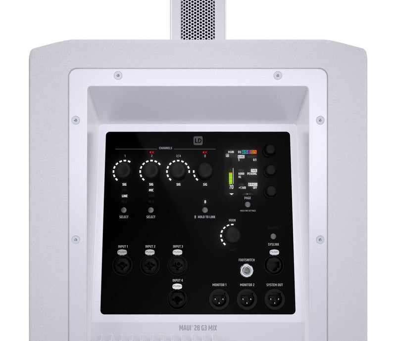 The MAUI 28 G3 MIX is a real sound machine, yet will impress solo entertainers, singer/songwriters or small bands daily with its smart features. Transport is as easy as usual, while the hidden multi-pin connections between the elements provide increased stability during assembly. There’s nothing that can knock the MAUI off its feet so easily.