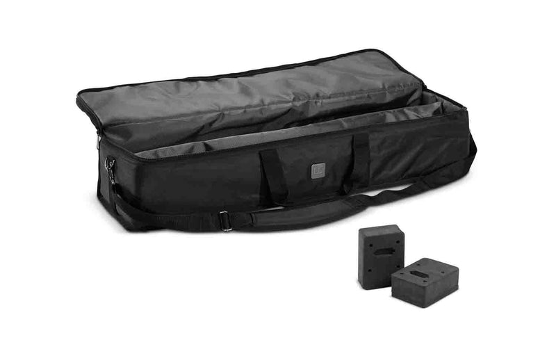 The LD System MAUI 28 G3 SAT BAG, Padded Transport Bag for MAUI 28 G3 Column is made of durable and water-repellent nylon 1680D. Inside, an 8 mm thick padding between the columns protects against scratches. Additional protection is provided by the rubber feet on the bottom of the bag. Two included foam caps fit perfectly on the multipin contacts to protect them from damage and ensure a secure fit in the bag