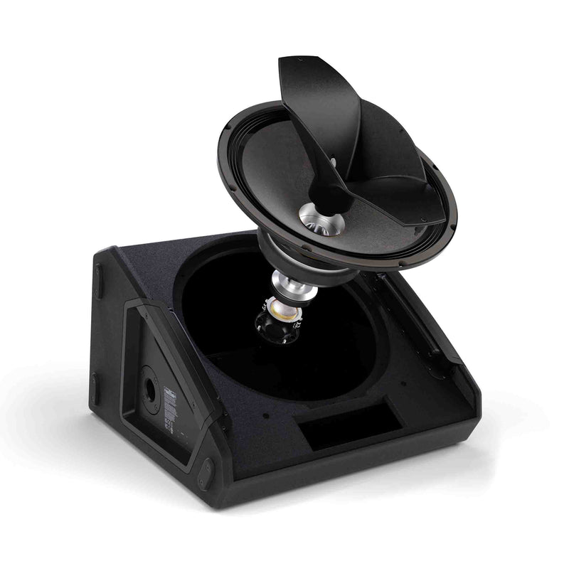 A maximum sound pressure level of 129 dB and superior bass reproduction make the MON 15 A G3 the best choice for loud band stages, as a drum fill or for stand-alone use as a compact front PA without an additional subwoofer. For a 15" stage monitor, it is unusually compact and elegant, so despite its impressive performance data, it blends harmoniously into the stage set. Both the signal (XLR/jack combo) and the power connection (PowerCON compatible) can be looped through. This allows for elegant, tidy cabling in multi-monitor set-ups or for distributed sound reinforcement.