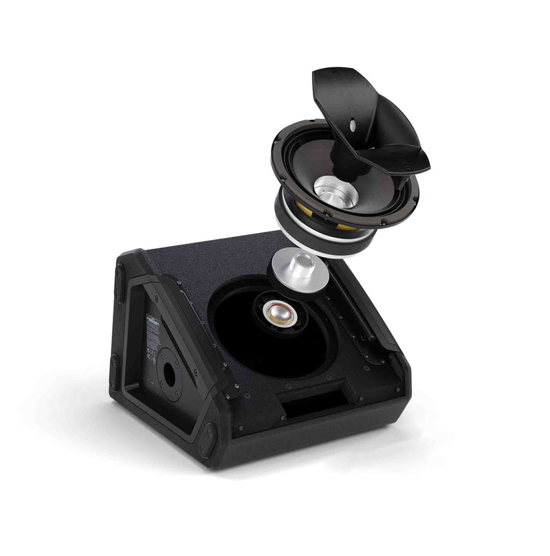 As the smallest member of the new stage monitor family, the MON 8 A G3 is particularly inconspicuous and flexible in use: as a stage monitor, in a DJ setup or on a speaker stand as a FOH speaker, as a satellite in 2.1 systems or as a delay line speaker. At the same time, the MON 8 A G3 offers a frequency response of up to 59 Hz, which is unusually low for its size, and thus full-range sound. Both the signal (XLR/jack combo) and the power connection (PowerCON compatible) can be looped through. This allows for elegant, tidy cabling in multi-monitor set-ups or for distributed sound reinforcement.