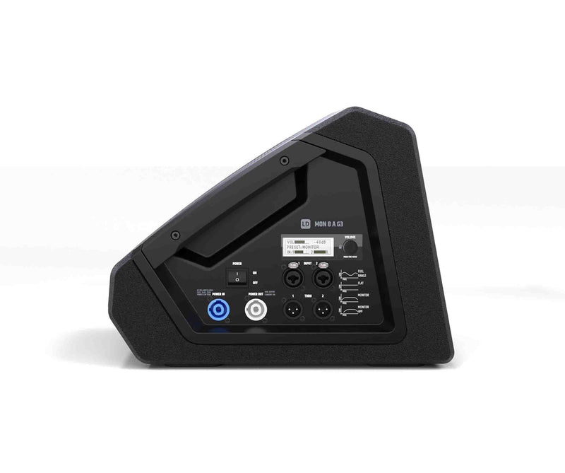 The LD System MON 8 A G3 is an 8" Powered Coaxial Stage Monitor. The MON 8 A G3 is part of an entirely newly developed family of powered stage monitors for high performance. The MON G3 Series incorporates the advanced technology and premium materials found in high-end monitors typically rented by professionals, making this quality available to everyone. These include, for example, advanced coaxial loudspeakers with integrated 50° x 90° CD horn, which ensure the acoustic ideal of a true point source and thus outstanding audio characteristics even at short listening distances. Besides this, the series offers a high-level of robustness, a comprehensive set of features and the elegant LD Systems design.