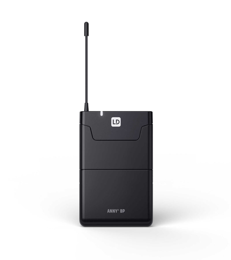 The LD Systems ANNY BP B5.1 Bodypack Transmitter for ANNY with the B5.1 frequency band operates in the 512 - 542 MHz frequency range. Equipped with a mini-XLR input and input level switch, it can be used with both active and passive microphones and instruments. With an output power of 10 mW, the bodypack transmitter allows audio transmission up to 80 metres. The bodypack transmitter is easily and conveniently synchronised with the ANNY receiver via infrared. Powered by two AA batteries (included), the ANNY BP can operate for up to eight hours without a battery change. A built-in status LED gives a white light when switched on and a red light when the battery is low. The power switch also provides a standby function for temporary muting, ideal for breaks in use without having to switch off the unit completely.