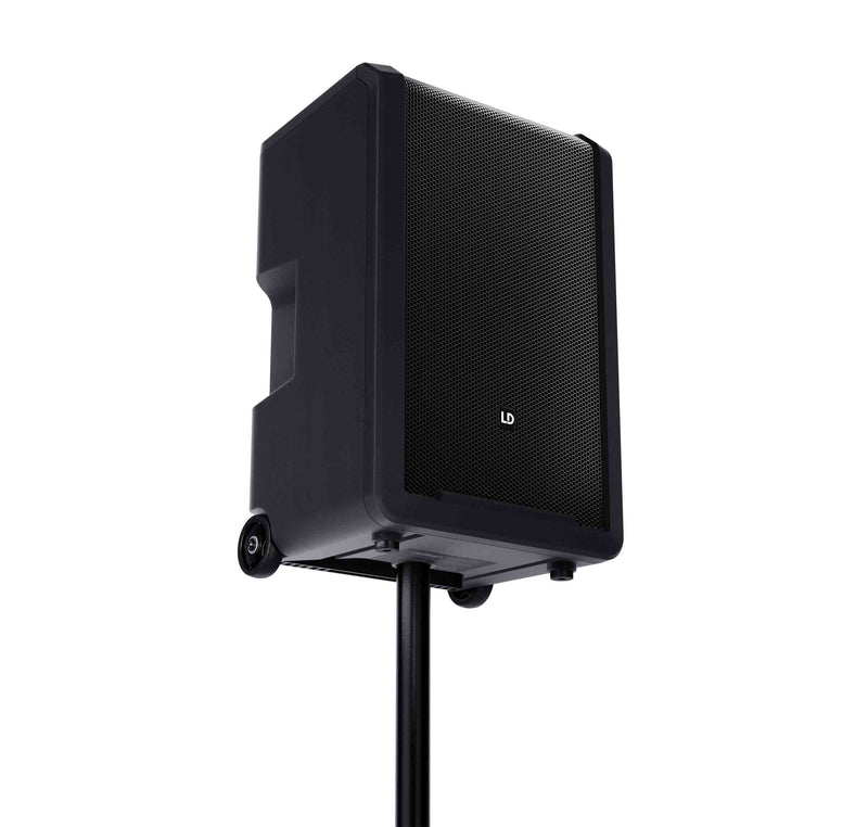 Equipped with a 10” woofer, 1” tweeter, wheels and telescopic handle, ANNY 10 offers an ideal combination of portability and sound performance. With an integrated 6-channel mixer, 3-band EQ, 5 application presets (MUSIC, LIVE, VOCAL, ECO, FLAT) and effects such as reverb & delay, it combines comprehensive features and outstanding sound quality in a compact and robust design. ANNY 10 impresses with its versatile connection options: two microphone/line combo inputs, one stereo channel with 3.5mm jack (AUX) and RCA inputs as well as Bluetooth 5.0 with AAC codec.