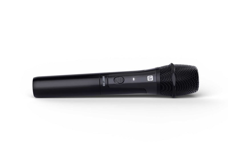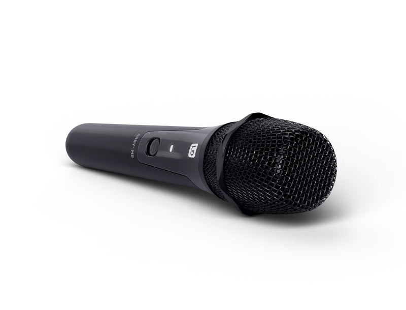 The LD Systems ANNYMDB47US wireless dynamic ANNY handheld microphone with cardioid capsule transmits with the B4.7 frequency band in a frequency range of 470 - 490 MHz. With an output power of 10 mW, the wireless microphone allows audio transmission up to 80 metres. The microphone is easily and conveniently synchronised with the ANNY receiver via infrared. Powered by two AA batteries (included), the ANNY MD can operate for up to eight hours without a battery change. A built-in status LED gives a white light when switched on and a red light when the battery is low.