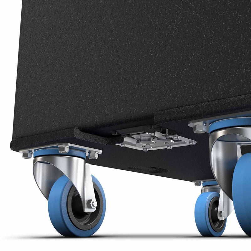 This stackable roller board is made of 15 mm birch multiplex with a polyurea coating that makes it extremely resilient and long-lasting. It is specially designed for the CURV 500 TS subwoofer and is securely fastened by means of two integrated butterfly locks. Four heavy-duty rollers with 100 mm wheels now make the sub easy to move around.