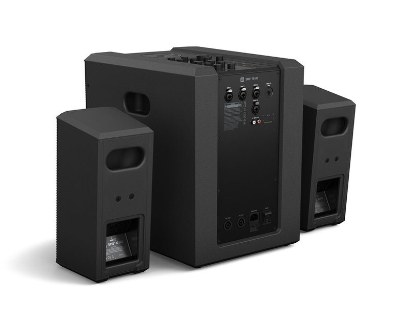 The LD Systems DAVE 10 G4X is a Compact 2.1 Powered Sound System Whether you're a DJ, a live combo, a solo entertainer or at your next party, you need a sound system that can handle the daily grind of live performance - with professional sound for a variety of applications, with a wide range of connections and accessory options for quick setup on site, and with maximum reliability. In a nutshell, your sound system has to be at its best around the clock.