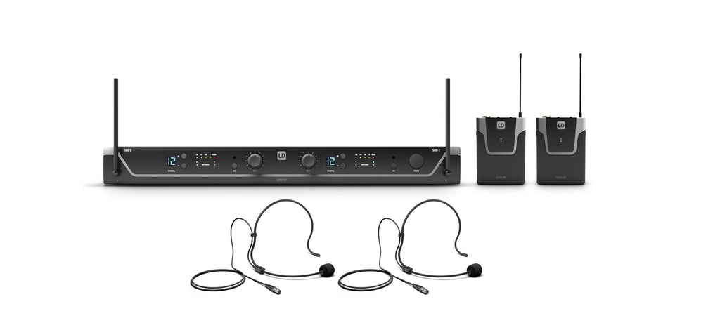 The U300 Series wireless systems have a fresh, modern look and are available with receivers and two cardioid dynamic handheld microphones (HHD2) or with two bodypacks and two headsets (BPH2). The microphone characteristic can be changed using U500-series replaceable heads.