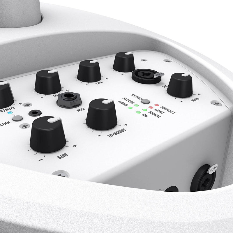 For unparalleled sound quality in all applications, the column system features LD Systems' LECC DSP with multi-band limiter, equalizer, compressor and crossover. The integrated 4-channel mixer provides separate volume controls for the input channels, sum and subwoofer as well as a variable high-frequency boost to facilitate fast and balanced adjustment to the sound. LD Systems’ Quick-Swap Technology also facilitates immediate and simple battery replacement for practically unrestricted operating times for the MAUI 5 GO 100.