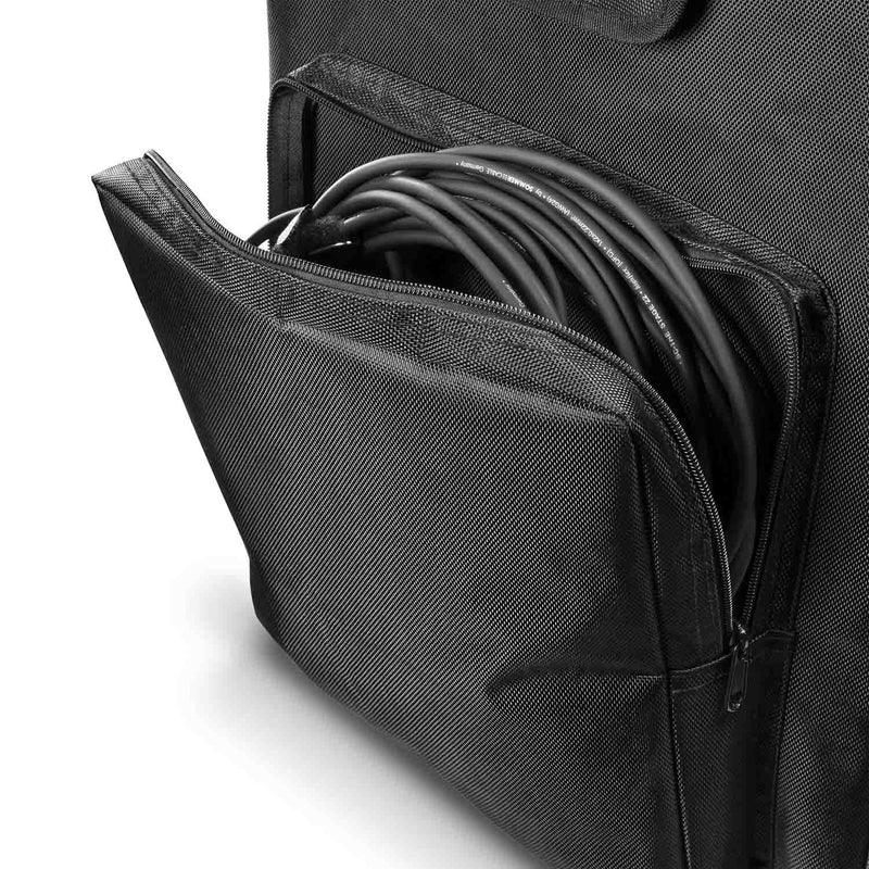 Keep your MAUI P900 subwoofer in mint condition with this slipcover. It is made of hard-wearing water repellent 1680D nylon with thick 16 mm padding to prevent dings and damage. Featuring a reinforced cutout with hook-and-loop fastener flap for easy handle access and an outer pocket to store your accessories, the cover provides a perfect fit. With its stylish design and charcoal piping, it is the perfect match for the MAUI P900's elegant lines.