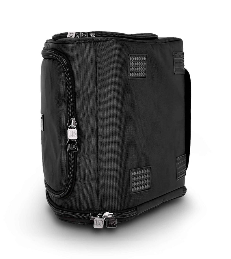 The LD Systems MON 10 G3 PC, Padded Protective Cover for MON 10 A G3 made of durable and water-repellent 1680D nylon, the MON 10 A G3 monitor is optimally protected against weather influences and other impacts. The 8 mm thickly padded protective cover can be easily slipped over the monitor standing on its side due to the large side zipper opening. The crossing of the internal Velcro straps ensures a secure fit in the protective cover.