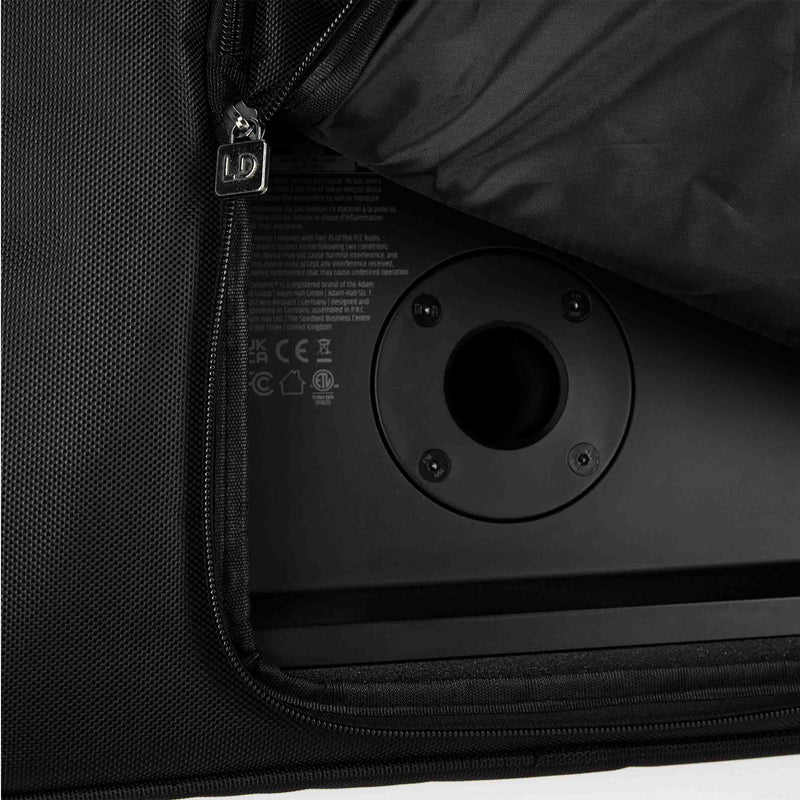 The LD Systems MON 12 G3 PC, Padded Protective Cover for MON 12 A G3 made of durable and water-repellent 1680D nylon, the MON 12 A G3 monitor is optimally protected against weather influences and other impacts. The 8 mm thickly padded protective cover can be easily slipped over the monitor standing on its side due to the large side zipper opening. The crossing of the internal Velcro straps ensures a secure fit in the protective cover.