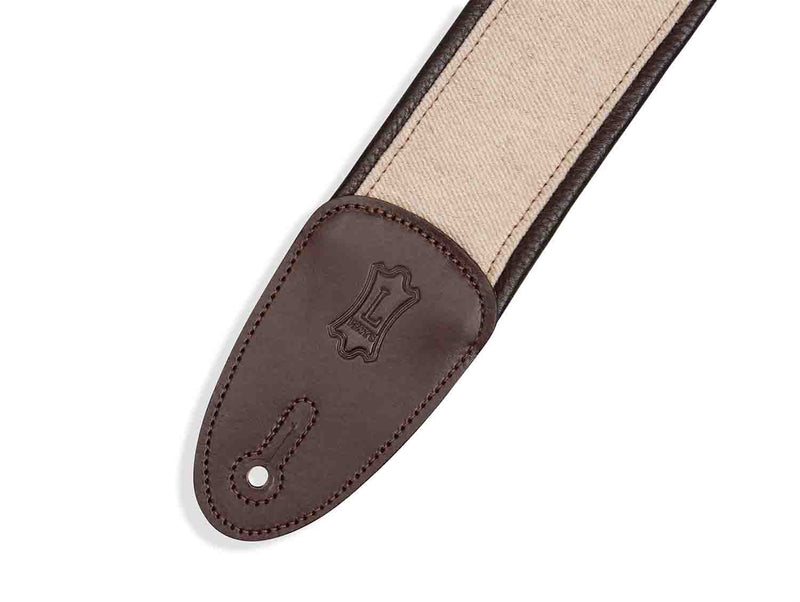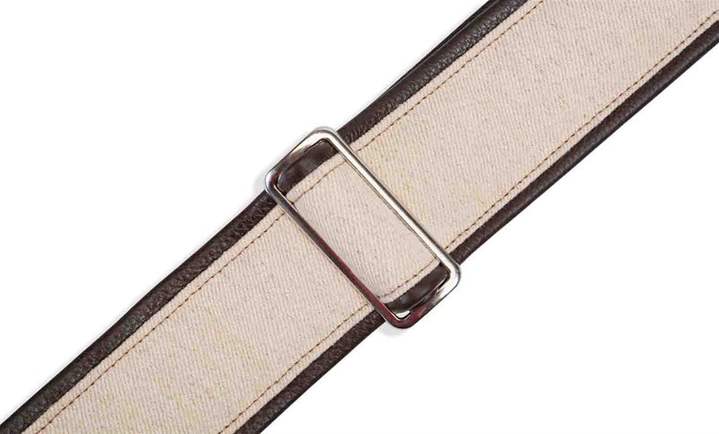 The Levy's MHG7-DBR 2.5 inch Hemp Guitar Strap With Supple Padding Wrapped in Garment Leather. Veg-Tan Leather Ends Branded with Naturals Icon, Silver Metal Slide and Loop Adjusts from 35 to 60 inches.