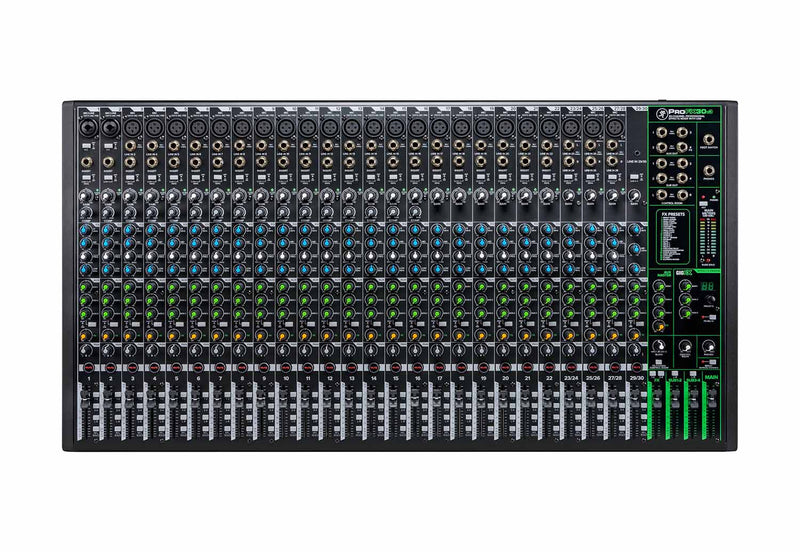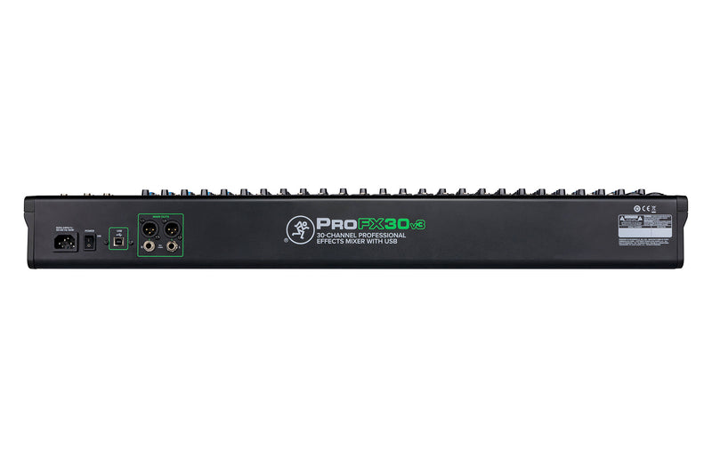 The Mackie PROFX30V3 is a 30 Channel 4-bus Professional Effects Mixer with USB. Mackie ProFXv3 Series mixers are the ultimate affordable solution for live, home recording, and content creators. Everything you love about the series has been dialed up to 11. Best-in-class sound quality, versatility, and reliability that will have you hugging your mixer on a regular basis. Now with Onyx mic preamps that offer 60db of headroom, 24 built-in FX, and more. Record your tracks in 24-Bit/192kHz quality with 2x4 USB I/O and zero-latency hardware monitoring.