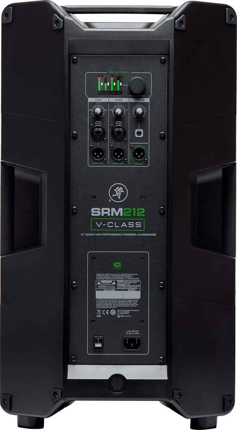 Mackie SRM212 V-Class 12" 2000W High-Performance Powered Loudspeaker is our most advanced amplifier platform ever, delivering incredible stability, headroom, and audio fidelity. Highest SPL in its class. Unrivaled reliability and rock-solid operation can withstand the most demanding applications. Universal power supply (100-240VAC) with Power Factor Correction for stable operation even with unstable AC power.