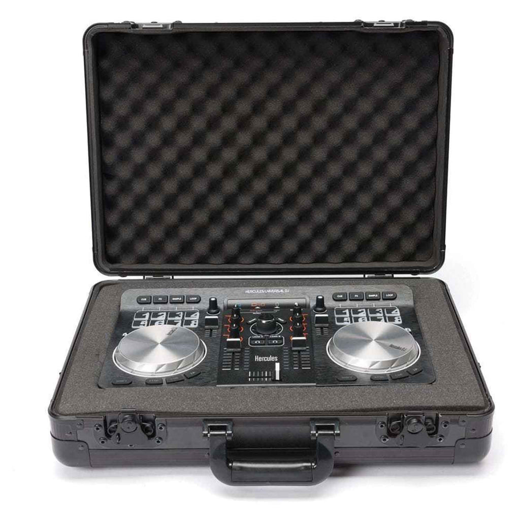 The new CARRY LITE DJ-CASE L is a very lightweight and compact carrying solution for your DJ-equipment and comes in a nice full-black matte finishing. Constructed from laminated MDF panels and anodized aluminum profiles the CARRY LITE design features a fully padded interior with a variable pick and pluck foam that allows creating individual adapted compartments for various-sized DJ-controllers such as Pioneer DDJ-SB2, NI Kontrol S2, Denon MC-3000 or most Hercules DJ-controllers. The pick and pluck foam consists of two separate layers providing the additional option to create another slot underneath the controller for laptop or cable storage.