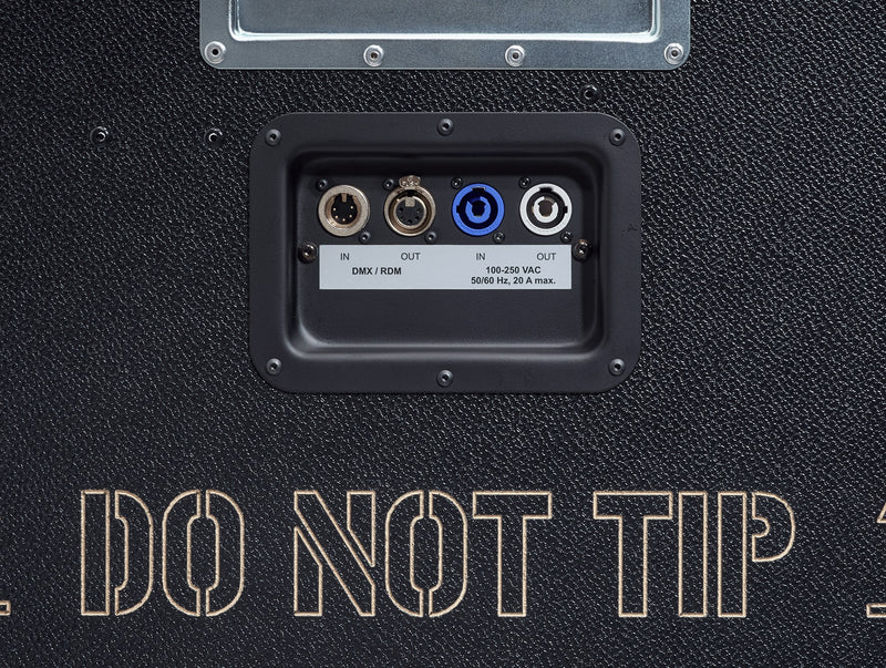 External powerCON and XLR-5 connectors DMX in/out. Simply plug in for instant use.