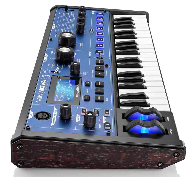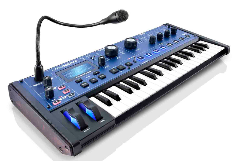 The Novation MININOVA 37-key Synthesizer with Vocoder is a most powerful sound engine and effects of any micro synth. More polyphony, more filters, more effects, more modulation. Every sound has easy access to almost limitless variations, which you can subtly tweak or totally warp with the twist of a knob or the touch of a button. Create all the dirty-fat bass, soaring leads, lush pads and vintage sounds you could possibly want - but on a tough and compact 37 mini-key synth.