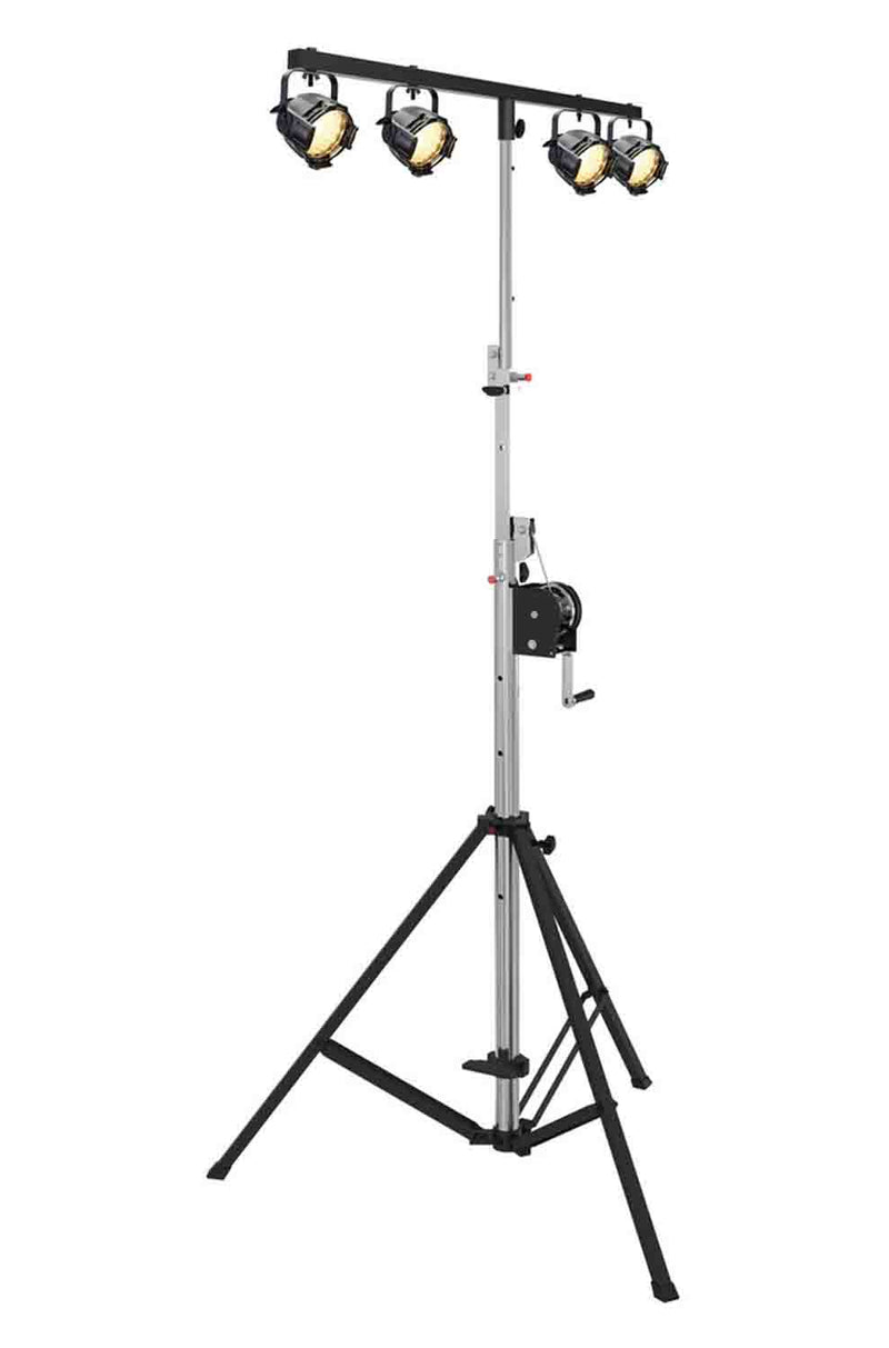 The Odyssey LCRANK133 Crank Stand is a reliable, heavy-duty stand designed to handle up to 200 lbs, making it ideal for DJ lighting, live bands, and events of any size. With an adjustable height ranging from 5.9 feet to a maximum of 13.3 feet, this stand offers the versatility to meet various setup needs. The robust crank mechanism features a secure lock, allowing for safe lifting and lowering of equipment, while the foldable tripod base ensures easy setup and storage. Whether for a small gathering or a large event, the Odyssey Crank Stand provides professional-grade support with durability and ease of use.