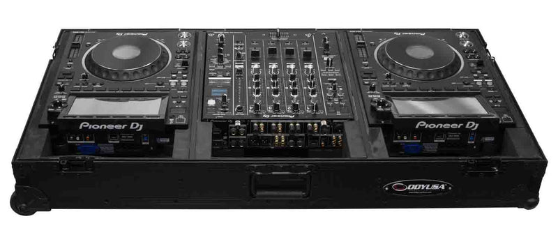 The Odyssey 810158 is a Industrial Board Case Fitting Most 12″ DJ Mixers and Two Pioneer CDJ-3000. Accomodates 12" Format DJ Mixers. Cable Port Hole. Corner Wheels. Lid Foam. Padlock Loop. Rubber Feet