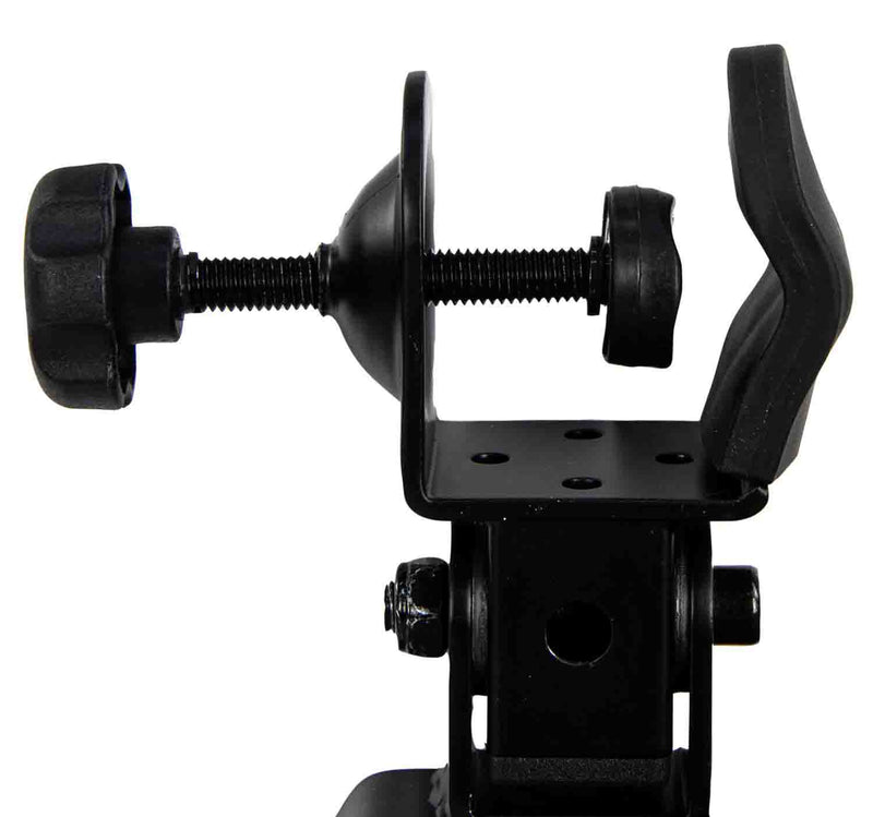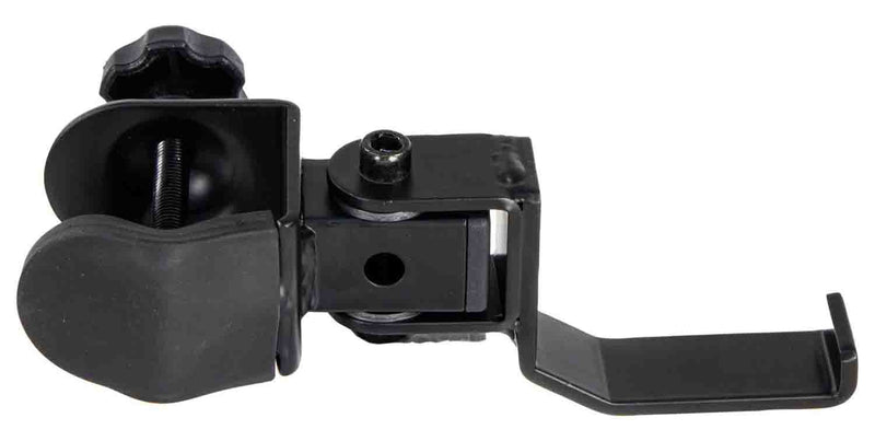 The Odyssey AHPHANGER Headphone Hanger is a versatile headphone holder that keeps multiple sets of headphones close at hand and out of harm's way when not in use. The holder has a convenient screw clamp that can attach to tables that are up to 1.5" thick. The clamp is designed to allow the clamp to be used on round-shaped tubes in addition to flat surfaces. The holder can be fixed in four different directions, allowing you to hang your headphones with the clamp in almost any orientation