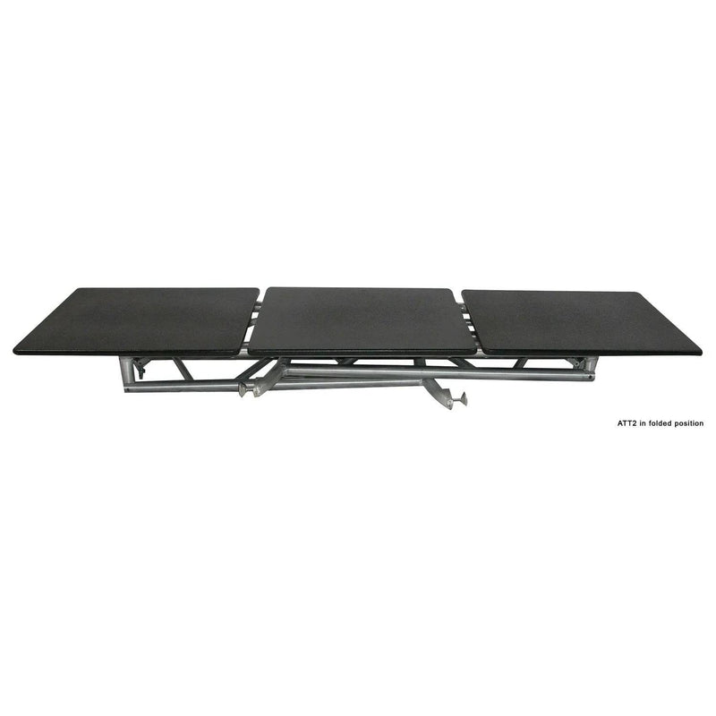 The ATT2 DJ Truss Table features folding legs portability and swiveling side platforms. Each of the 3 table tops measure 18.5" x 19.5".
