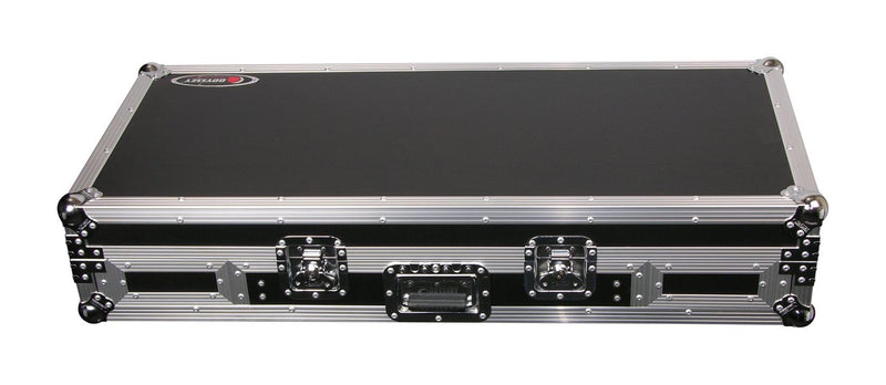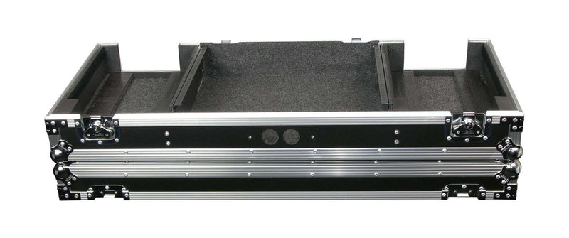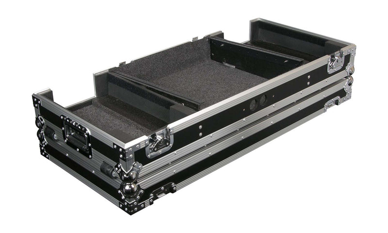 The Odyssey FZ19CDiW Universal 19-Inch Format DJ Mixer and Two Medium Format Media Players Coffin Flight Case hold two large format tabletop CD/media players and one mixer. These ATA rolling coffins feature rugged built-in wheels, heavy-duty latches and spring-loaded handles, steel ball corners, and removable front access panels. Cabling is clean and easy through convenient access ports throughout.
