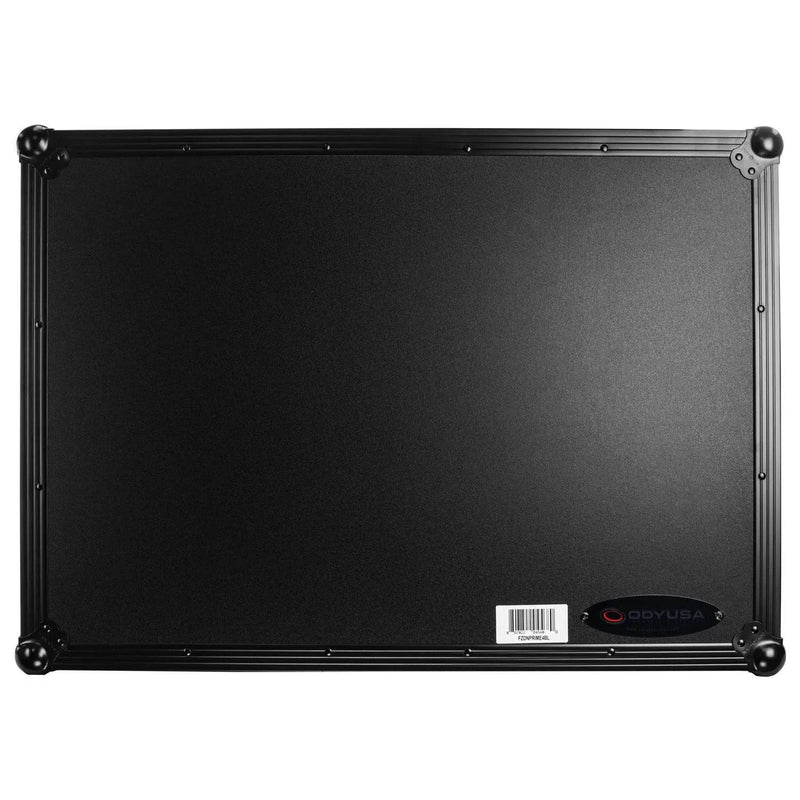 The compact BLACK LABEL FZDNPRIME4BL case specifically designed to hold the Denon Prime 4 DJ controllers features our exclusive, patent-pending, high-density quick access open port bevel foam interior that neatly angles upward with the controller raised above the case bottom for an efficient control surface. The sleek reverse lid shallow bottom design allows easy access to the front controls and headphone mic jacks. Each is built with rubber feat, hefty ball corners, and heavy-duty recessed latches and handles.