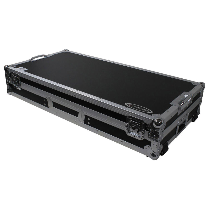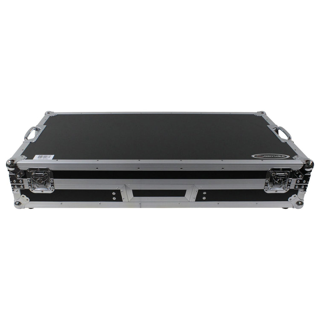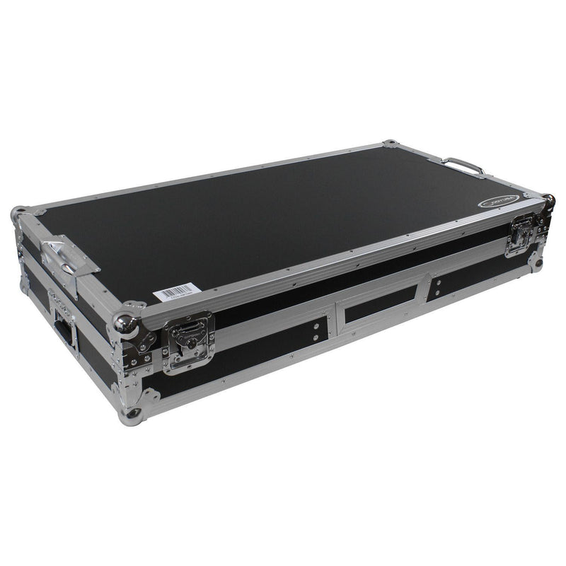 The FZGSLBM10WR Low Profile Glide Style Coffin holds one 10" format mixer and two turntables in battle position. Features include built-in roller wheels, sturdy 90 degree handles on the lid, recessed latches and spring-loaded handles, heavy-duty ball corners, and a front mixer section V-cut access panel. Cabling is clean and easy with convenient access ports throughout the rear of the case. Our turntable DJ coffins can accommodate Technics as well as Numark, Pioneer, Stanton, and similar sized turntables.