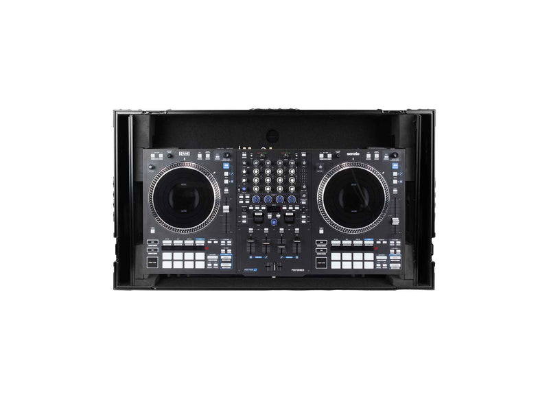 The Odyssey FZGSPERFORMERW1BL is a premium Black Label flight case specifically designed for the RANE PERFORMER setup. Featuring a Glide Style laptop platform and built-in roller wheels, this case offers both convenience and protection for mobile DJs and performers. Constructed with all-black anodized and powder-coated hardware, it provides a sleek, professional appearance while ensuring durability. The case includes a cable port hole, edge handles, a removable panel, and foam lining to secure your equipment. The Glide Style platform ensures easy access to your laptop, while the roller wheels make transport effortless. Please note, the RANE PERFORMER is not included.